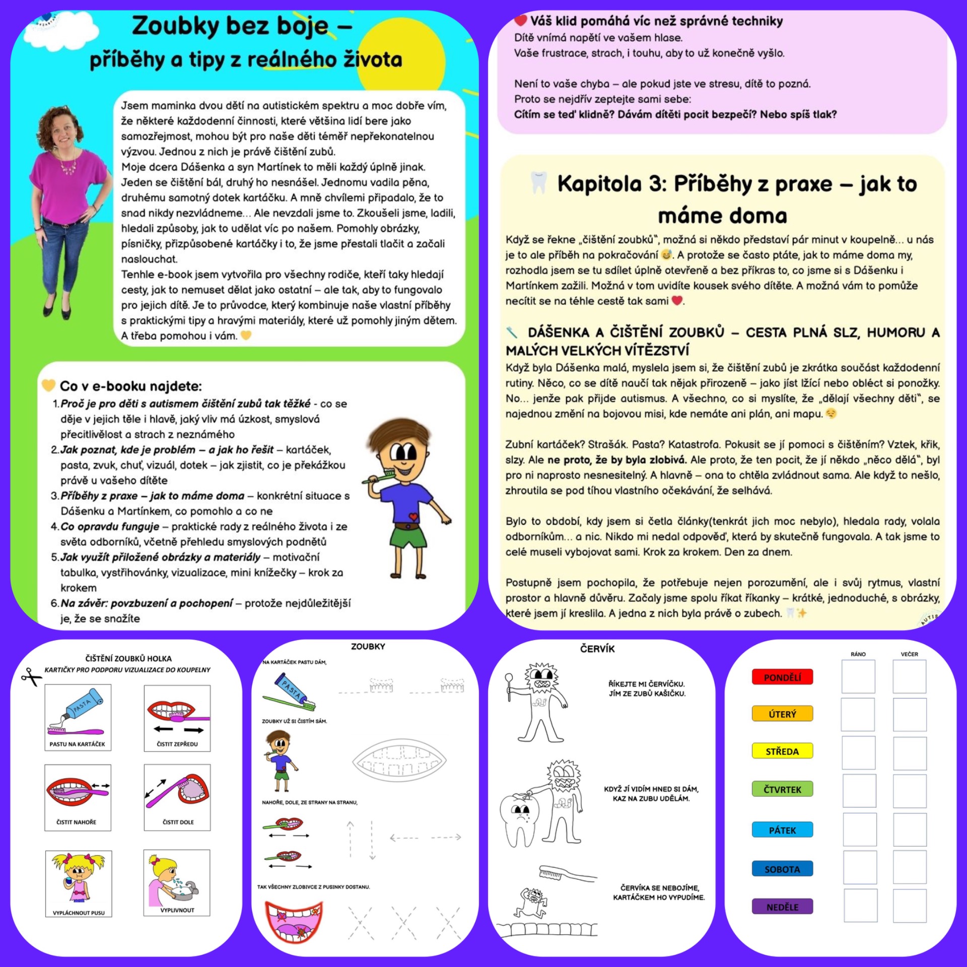 Jsem máma dvou dětí na spektru a dobře vím, že i obyčejné "běž si vyčistit zuby" může doma znamenat slzy, křik, odpor – a bezmoc. Proto jsem vytvořila tenhle laskavý e-book, který přináší klid, naději a hlavně konkrétní cesty, jak na to jinak. Jemně, s pochopením, bez nátlaku. A hlavně tak, aby to dávalo smysl právě vám. (29 stran)